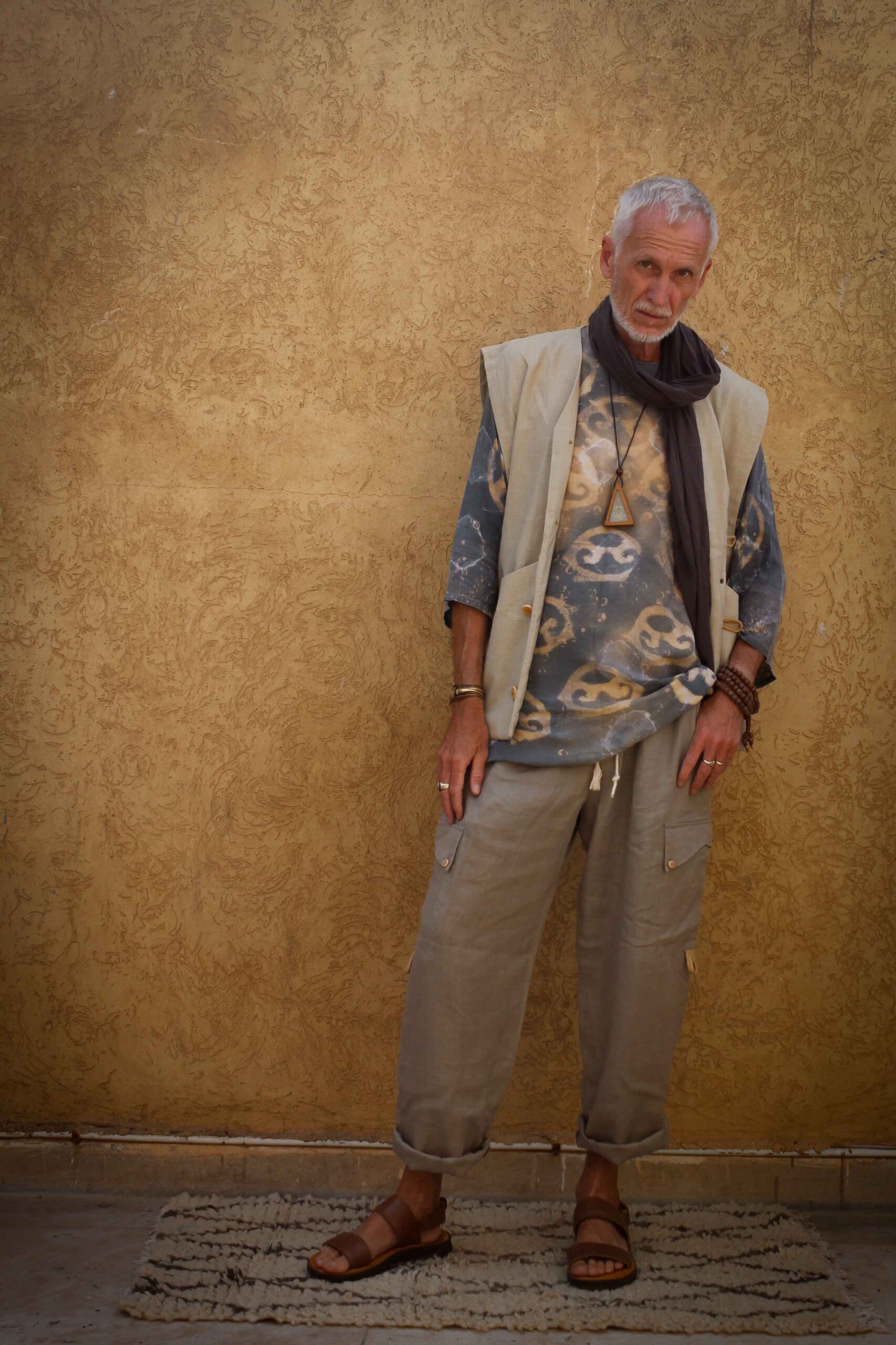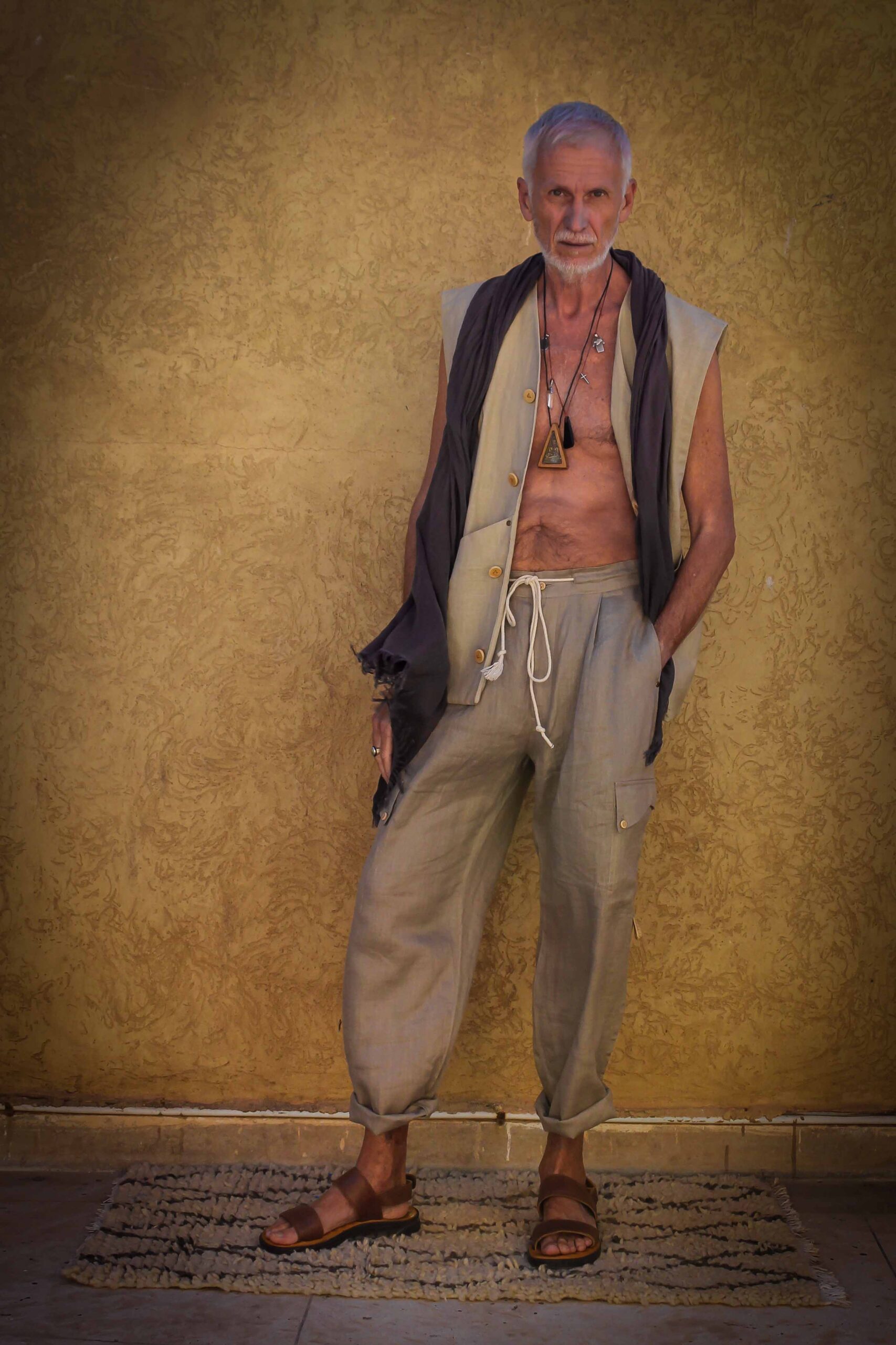 The Pilgrim: Walk your path with comfort and dignity. Linen's natural texture and breathability offer a grounding, mindful feel for sacred journeys and quiet reflection.
